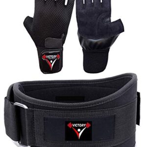 Victory Fitness Combo 4.5’’ Inch Wide Weightlifting Gym Belt & Back Support and Gym Glove Leather Palm with Net (Black) Buy on Amazon