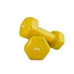 A pair of unisex vinyl dumbbells (2 kg each) ideal for women and beginners