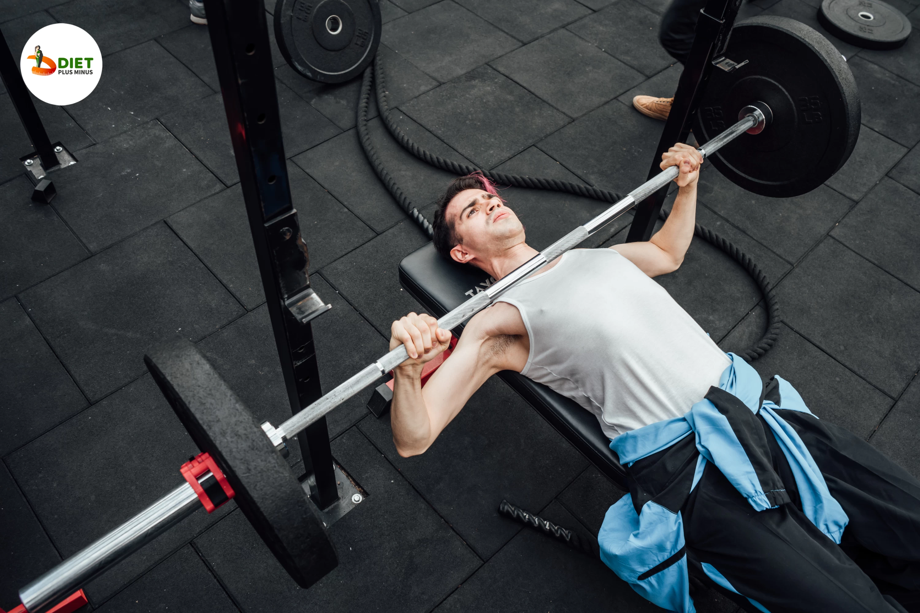Hold the barbell slightly wider than shoulder-width apart and slowly lower it to your chest. Push up with your chest, elbows tucked in at 45 degrees. Avoid arching or lifting off the bench to avoid shoulder and lower back strain. Finally, inhale deeply before lowering the barbell and exhale forcefully when pushing up. Start with light weights until you feel confident enough to gradually increase resistance. Proper form takes practise.