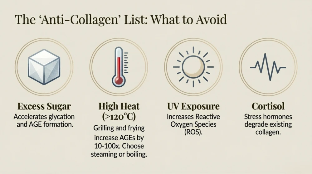 The effectiveness of these drinks is significantly influenced by your daily habits. External factors like UV exposure and high-sugar diets can counteract your efforts through a process called glycation. This happens when sugar molecules attach to collagen, creating advanced glycation end products (AGEs) that make your skin feel stiff and brittle. Adopting a low-glycemic index diet and protecting yourself from the sun are strategic partners to your collagen-boosting routine, ensuring your skin remains flexible and resilient.