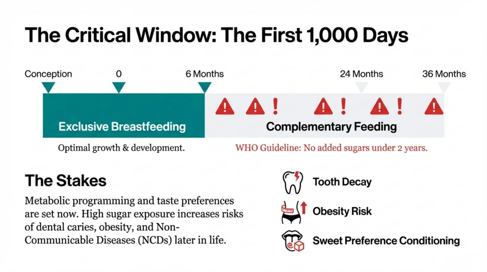 The first 1,000 days of life, spanning from conception to a child's second birthday, represent a critical window for physiological development. At Dr. Pankaj Kumar Medical and Lifestyle Clinic, we recognize this period as a "programming" phase where nutrition does more than fuel growth; it hardwires a child's metabolic health and lifelong taste preferences. Research indicates that clinical factors, such as breastfeeding for less than six months, are already linked to a higher risk of childhood obesity. While the colorful jars on supermarket shelves promise health and convenience, they often function as a strategic trap. Modern data reveals a stark disconnect between the wholesome imagery used in marketing and the clinical reality of what is inside the packaging.