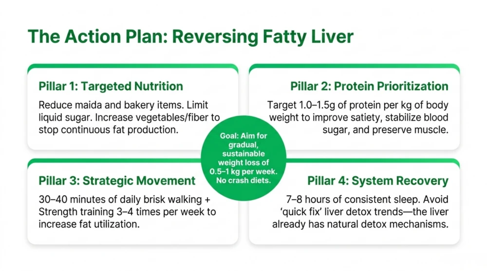 Managing fatty liver is not about temporary diets or quick fixes. It requires correcting the underlying metabolic imbalance.