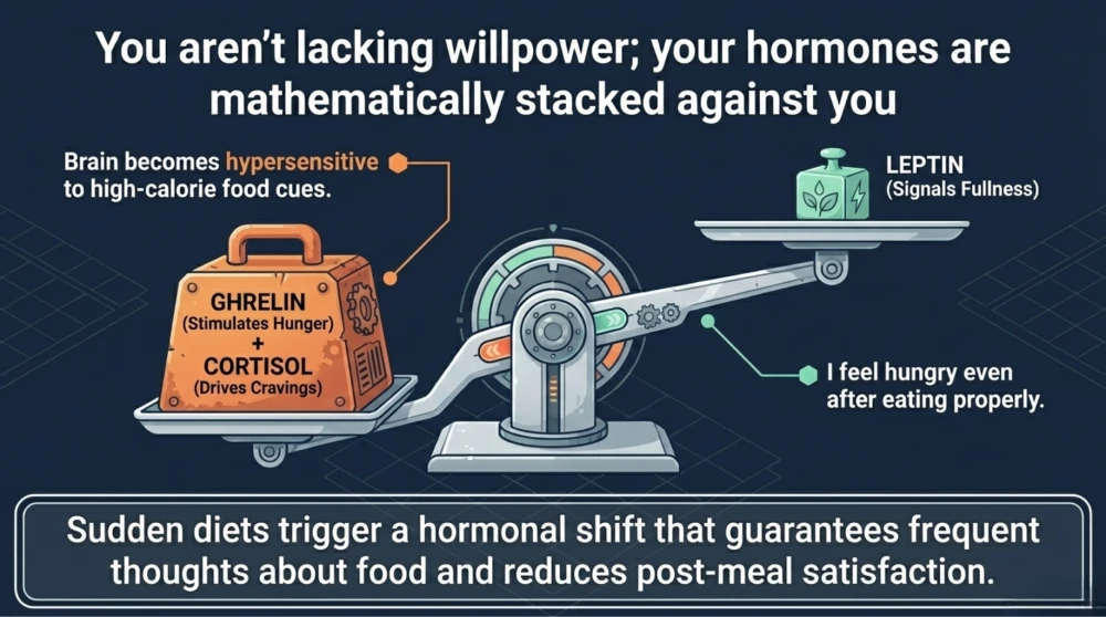 Another major reason your body resists sudden diet changes is hormonal imbalance, especially involving hunger and satiety hormones.